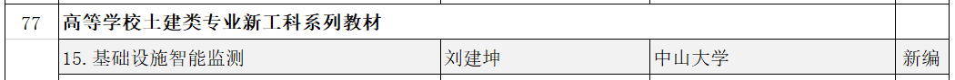 入选的2个教材选题为土木工程类,其中,修订1个、新编1个。修订教材《路基工程(第三版)》为 “十二五”普通高等教育本科国家级规划教材,由万博官网刘建坤教授担任主编,入选本次高等学校土木工程学科专业指导委员会规划教材(经典精品系列教材);新编教材《基础设施智能监测》由刘建坤教授和梁思明助理教授合作编写,入选本次高等学校土建类专业新工科系列教材。