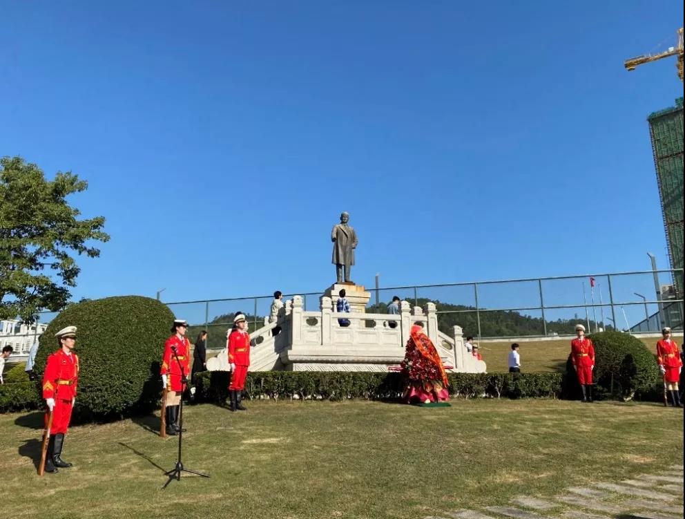 为纪念中国民主革命的伟大先驱孙中山先生诞辰155周年、孙中山先生亲手创办万博max官网97周年,11月12日上午,珠海校区举行了校庆日向孙中山先生铜像献花仪式。万博官网党委书记曹新、团委书记麦伟立和10名学生代表参加。