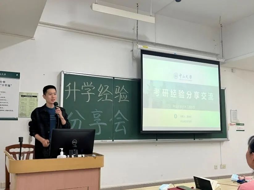 随后,5位学长依次进行经验分享。从外校考入中大的张永正师兄为大家分享了他在考研过程中的点滴经验:考研需要准备什么?如何备战高数英语?什么时候开始备战何种科目?他将自己的实践经验一一介绍,让目前想要考研但却不知如何入手的同学有所收获。