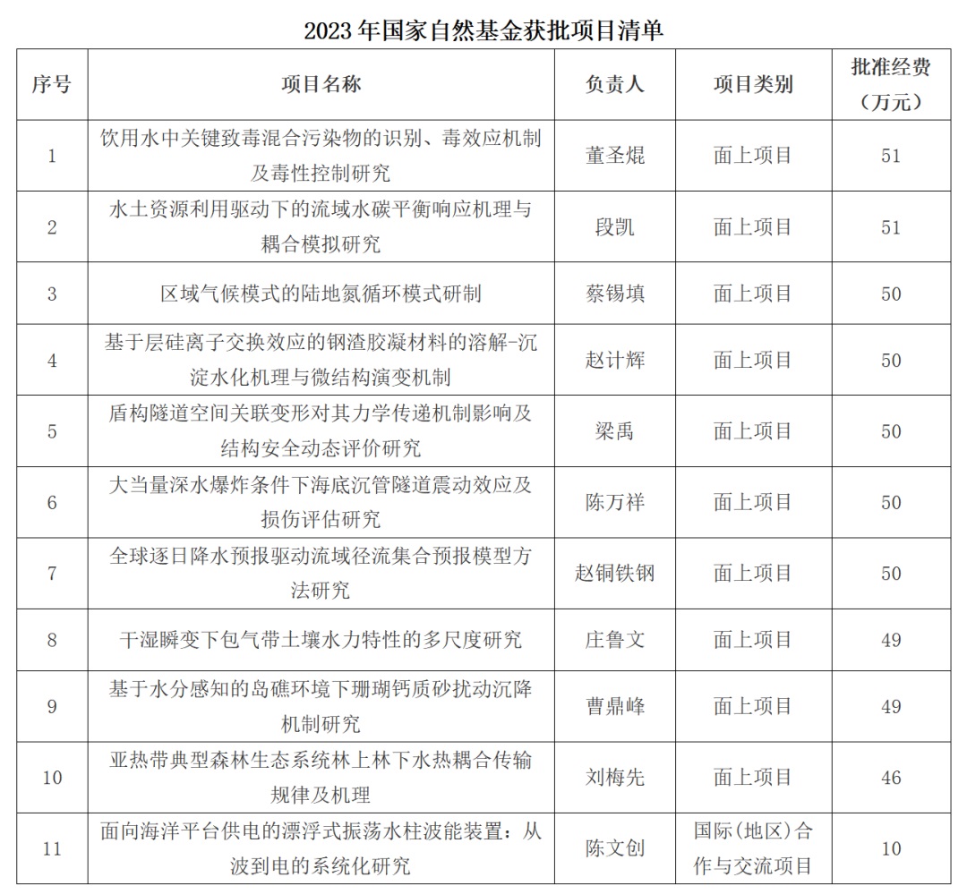 近日,2023年度国家自然科学基金项目评审结果公布,万博官网共获得11项国家自然科学基金项目立项。其中,面上项目10项,国际合作交流项目1项。获批立项资助总经费(直接经费)为506万元。