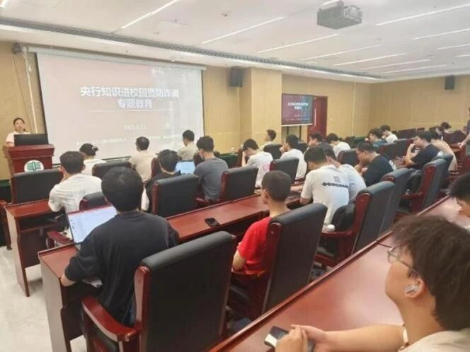 征信科工作人员以“信行天下,达人立己”为题,通过专题短片生动解读征信本质与社会价值,详细介绍了信用报告解读技巧,解析“为何征、征什么、谁来征”三大核心问题,明确公民享有的征信权益。结合助学贷款、租房就业等生活场景,强调了良好信用记录对个人发展的关键作用,并就征信热点问题给予权威解答。支付结算科工作人员聚焦“防范电信网络诈骗”,深度揭露电诈四大特征(非接触式、高迷惑性、跨境作案、追损困难)及产业化黑产链条。重点分析了刷单诈骗、冒充公检法等典型案例,拆解诈骗底层逻辑,还重点解读了《反电信网络诈骗法》及“帮助信息网络犯罪活动罪”法律红线,警示同学们远离“两卡”租借行为,防范诈骗要做到不轻信、不透露、不转账、多核实。