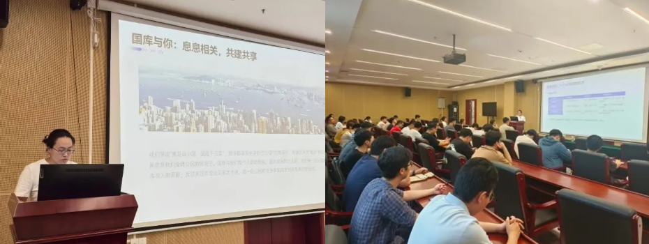 中国人民银行珠海市分行国库科工作人员以“央行经理国库40周年——青春与国库同行”为主题,系统介绍了国库的七大职能、资金流向及人民银行管理国库的四大优势(资金安全、规划便捷、政策协调、监督制衡)。通过讲解“积极财政政策+稳健货币政策”的组合调控艺术,介绍了国家经济治理智慧。特别指出了国库与青年学生的紧密关联,从学业资助、创业扶持到未来投资理财,国库始终是民生保障的坚实后盾,还介绍了适合青年和学生群体的国债投资渠道。