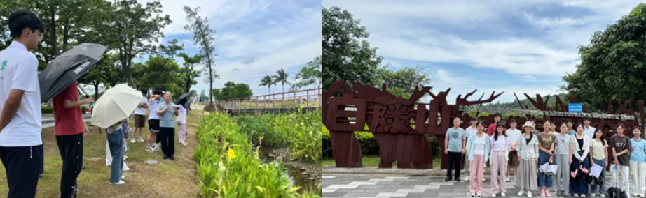 珠海市金湾区海绵城市示范区是珠海市海绵城市的建设典范。通过实地参观机场东路美化绿化提升工程、白藤山生态修复湿地公园与中心河堤岸景观工程,同学们了解了建筑、道路、公园、水系中的雨水花园、下沉式绿地、植草沟、透水铺装、排洪渠等多种海绵体设施的实际应用效果,深刻理解了海绵城市“渗、滞、蓄、净、用、排”的设计理念。与技术人员的交流探讨,让同学们不仅了解了海绵城市运维管理的技术要点。也深刻认识到这项系统工程对提升城市韧性、促进人水和谐的重要价值,为未来参与生态城市建设积累了宝贵的实践经验。