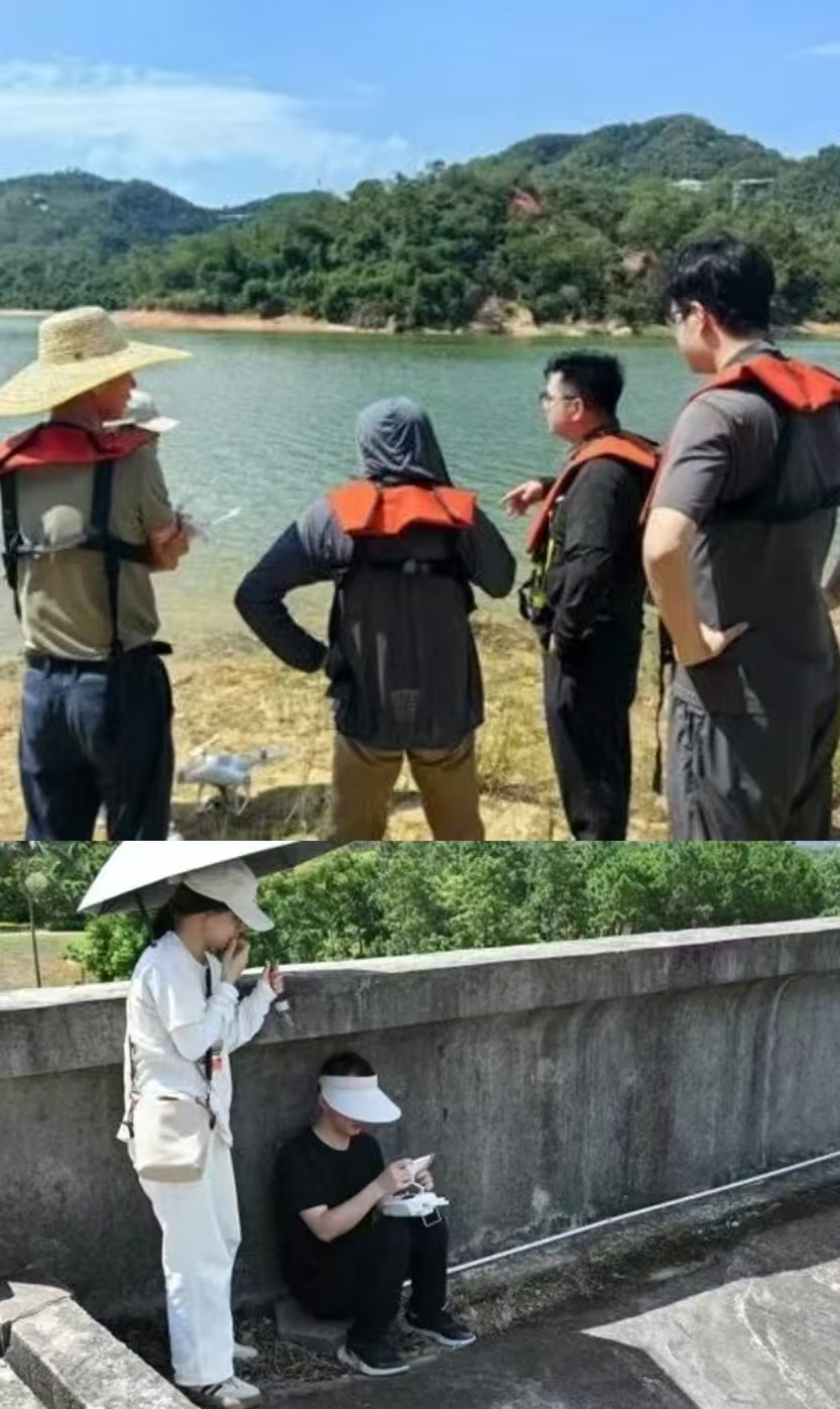 ▲实践团在大镜山水库、乾务水库开展无人机航测作业