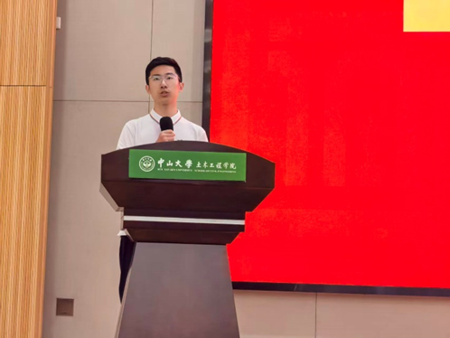 2025级本科新生代表孙浩钧同学表达了对中大土木的憧憬与自豪。他提到,从开学典礼上高松校长的讲话到军训期间老师们对学院、学科和研究团队的介绍,都让他对所选择的专业有了更深入的认识。土木、水利与海洋工程不仅是一个专业,更是一份"固坝修道,汇通江海,奉献国家"的责任与担当。他代表全体新生表示,将以积极的姿态迎接挑战,敬畏知识、超越自我,打好专业基础,扎好马步,争取早进实验室、早进团队,用实践探索真知,用脚步丈量祖国大地。