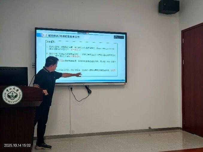 四位主讲人结合各自研究专长,围绕城市更新与低碳经济的关键议题分享。邱顺添教授系统介绍了其前期水系统研究基础,重点阐释了极端气候下城市内涝模拟、泛在感知技术应用及未来价值构建路径;化学工程与技术学院吴明娒教授聚焦发光材料与电化学应用场景,探讨其在低碳科技中的潜力;佘年教授围绕模型算法与低碳经济量化方法学,介绍了碳普惠机制、基线设定及应用实践;马保松教授指出,管网作为城市居民生活的基础,其更新应注重绿色低碳方法的创新。他阐明了非开挖修复技术在此过程中的核心优势,并强调需围绕全过程的碳排放开展全方位研究。相关研究方向的教师代表们逐一发言,结合自身领域分享了在城市更新、低碳技术、环境治理等方面的研究进展与应用设想。