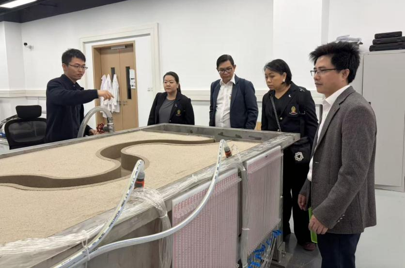 座谈后,在林凯荣副院长和黄鹏副教授的陪同下,泰国朱拉隆功大学代表团参观了学院实验室。