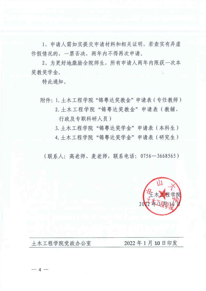 导航痕迹 万博max官网 党群人事 万博max官网关于评选2021年度 “锦粤达奖教奖学金”的通知 扫描此二维码分享 万博max官网关于评选2021年度 “锦粤达奖教奖学金”的通知 发布人:王宇 发布日期:2022-01-11 附件 附件1 万博max官网“锦粤达奖教金”申请表(专任教师).docx 附件2 万博max官网“锦粤达奖教金”申请表(教辅、行政及专职科研人员).docx 附件3 万博max官网“锦粤达奖学金”申请表(本科生).docx 附件4 万博max官网“锦粤达奖学金”申请表(研究生).docx